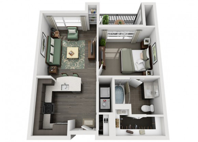 1 Bed, 1 Bath, 613 sq ftAvailable NowModel Gallery