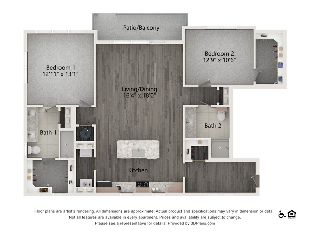 Apartment Model: A2-HC$1,6501 Bedroom, 1 Bath, 681 sq ftAvailable NowFloor plans are artist's rendering. All dimensions are approximate. Actual product and specifications may vary in dimension or detail. Not all features are available in every rental home. Prices and availability are subject to change. Base rent is based on monthly frequency. Additional fees may apply, such as but not limited to package delivery, trash, water, amenities, etc. Deposits vary. Please see a representative for details.