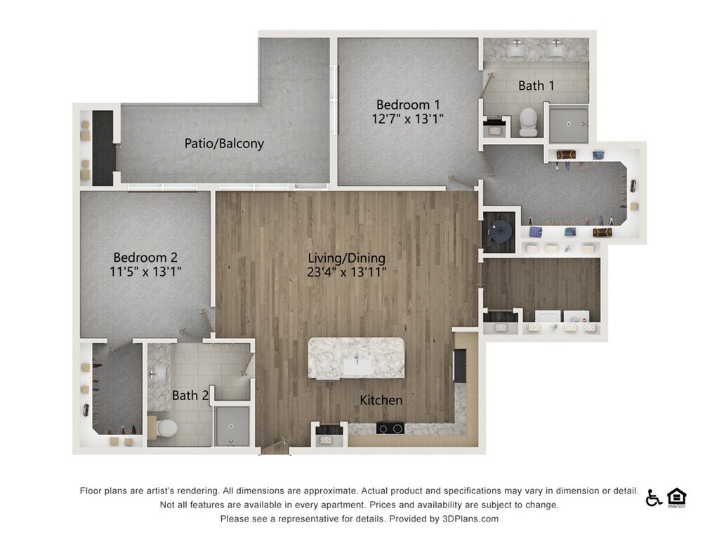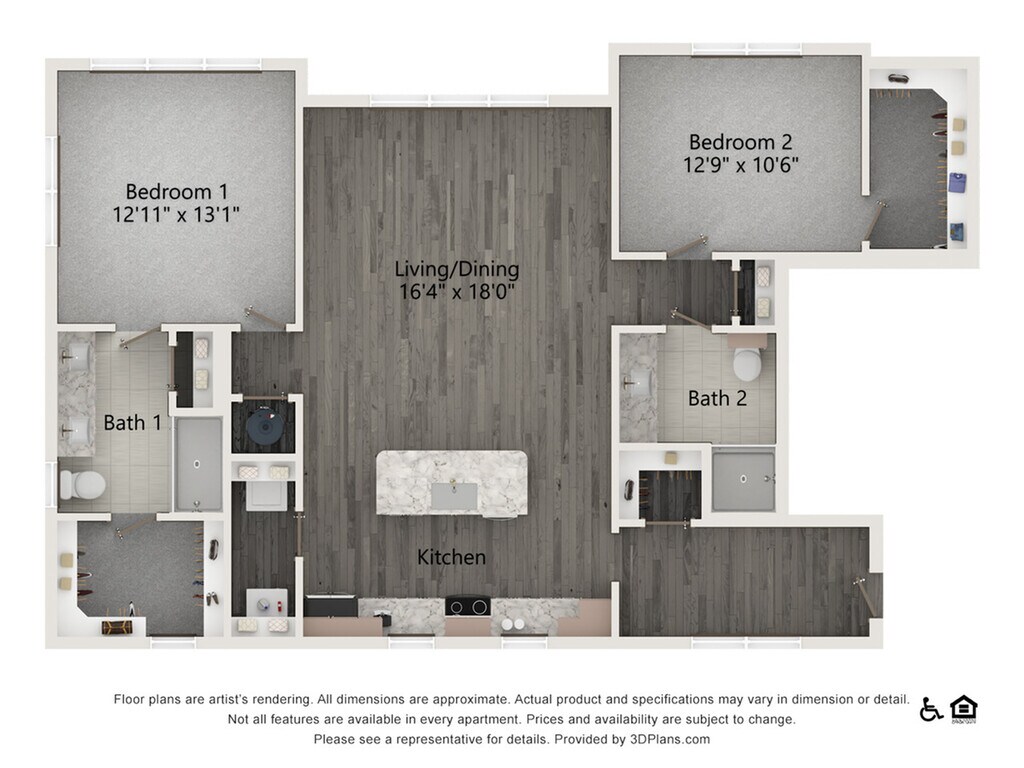 1 Bed, 1 Bath, 624 sq ftAvailable NowModel Gallery