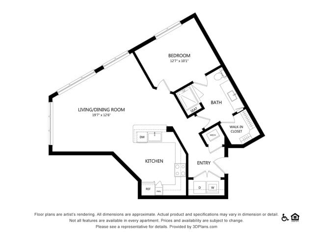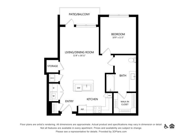 Apartment Model: A1From $1,4991 Bedroom, 1 Bath, 598 sq ftAvailable NowFloor plans are artist's rendering. All dimensions are approximate. Actual product and specifications may vary in dimension or detail. Not all features are available in every rental home. Please see a representative for details.