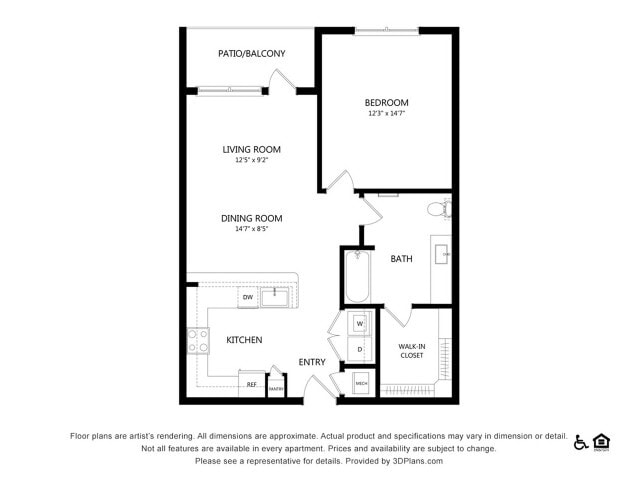 Apartment Model: A1AFrom $1,7681 Bedroom, 1 Bath, 598 sq ftAvailable NowFloor plans are artist's rendering. All dimensions are approximate. Actual product and specifications may vary in dimension or detail. Not all features are available in every rental home. Please see a representative for details.