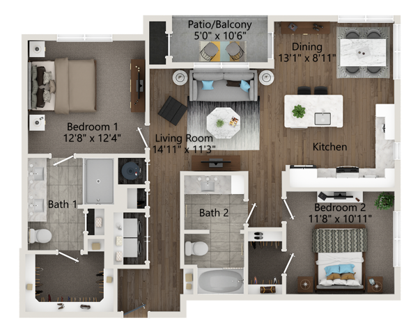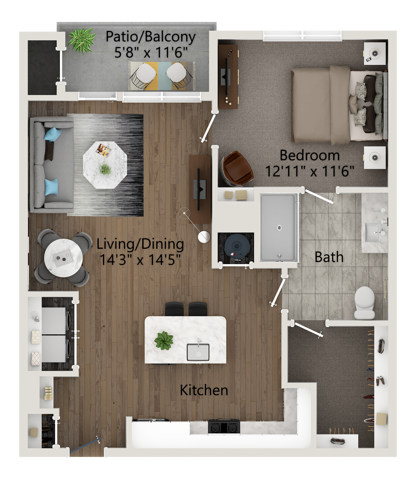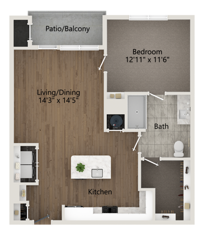 1 Bed, 1 Bath, 599 sq ftModel Gallery