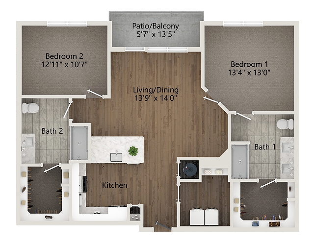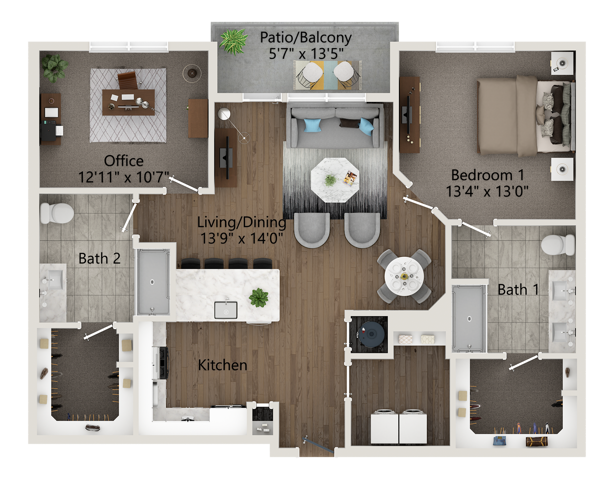 1 Bed, 1 Bath, 675 sq ftModel Gallery