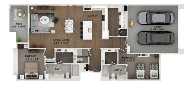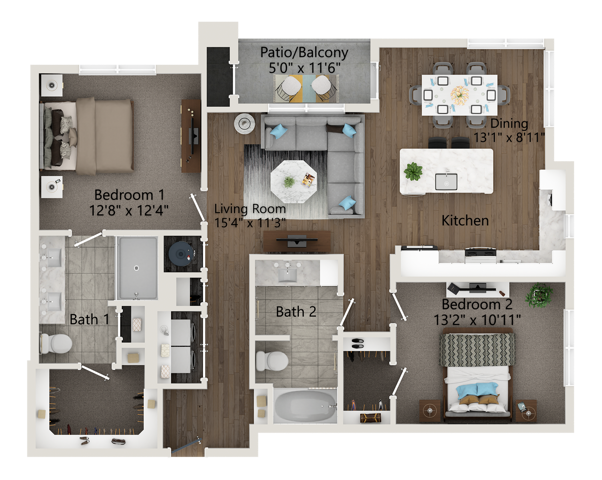1 Bed, 1 Bath, 832 sq ftModel Gallery
