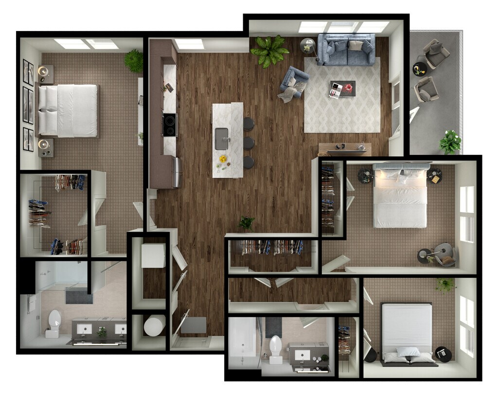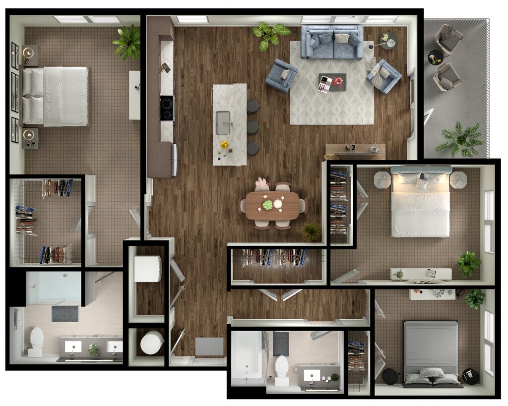 1 Bed, 1 Bath, 996 sq ftModel Gallery