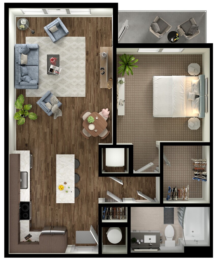 1 Bed, 1 Bath, 698 sq ftModel Gallery