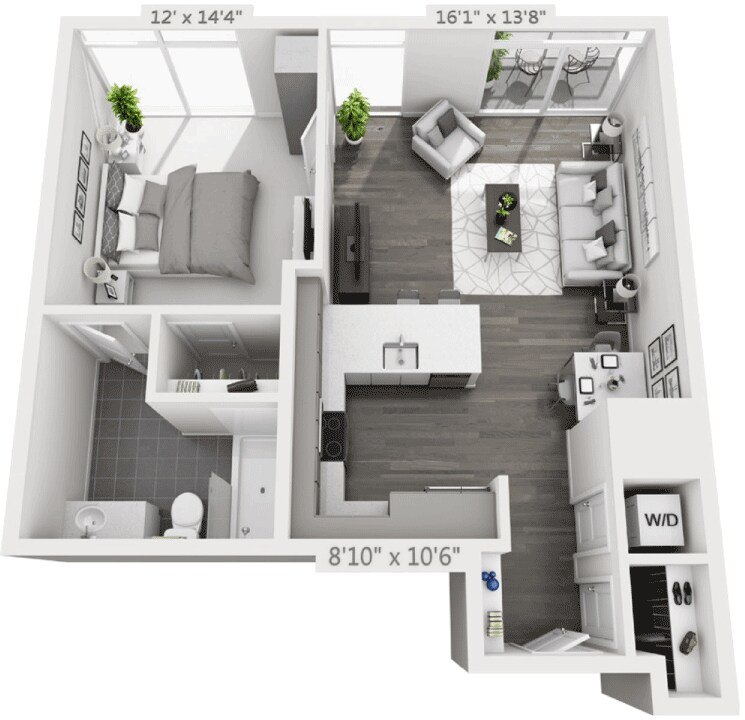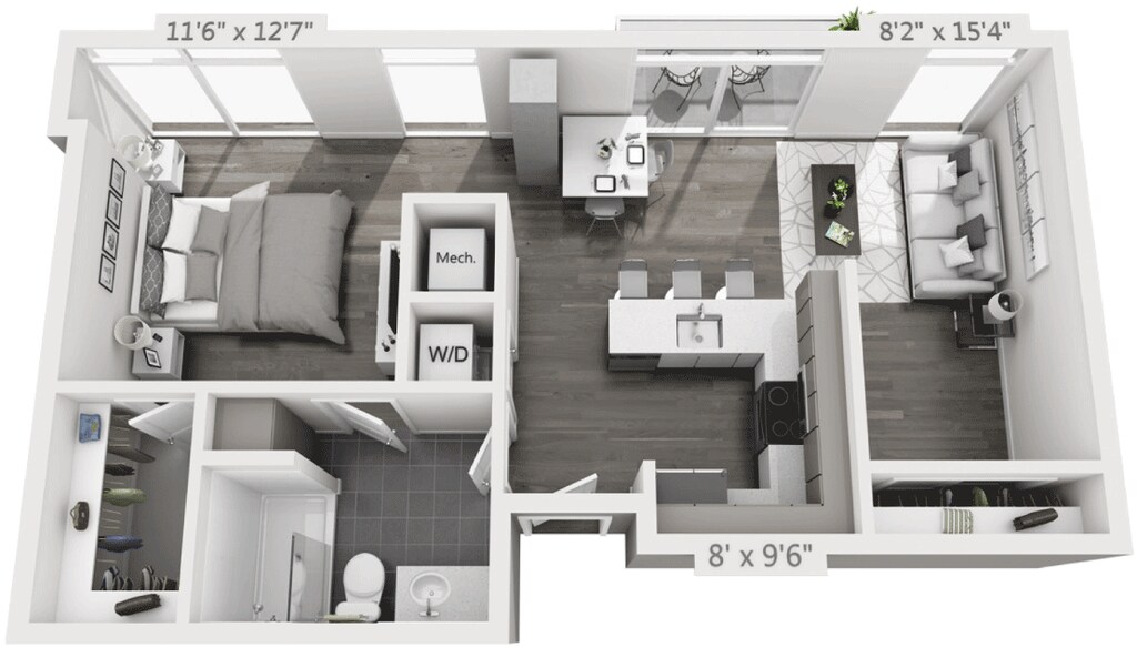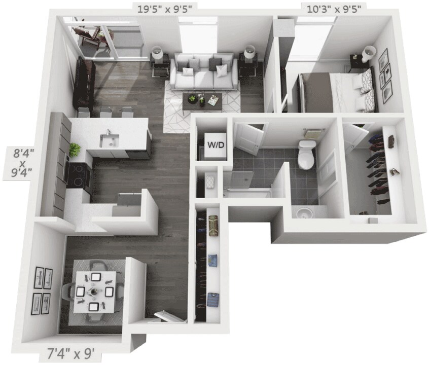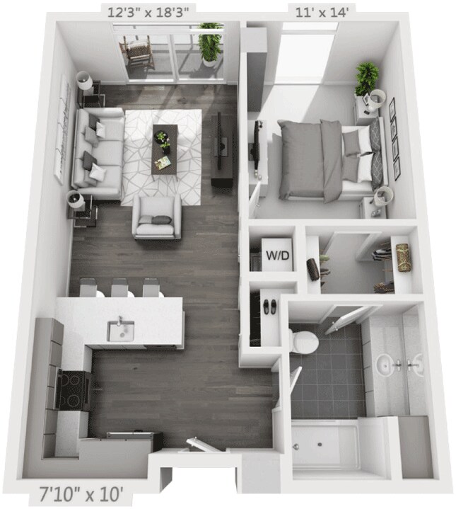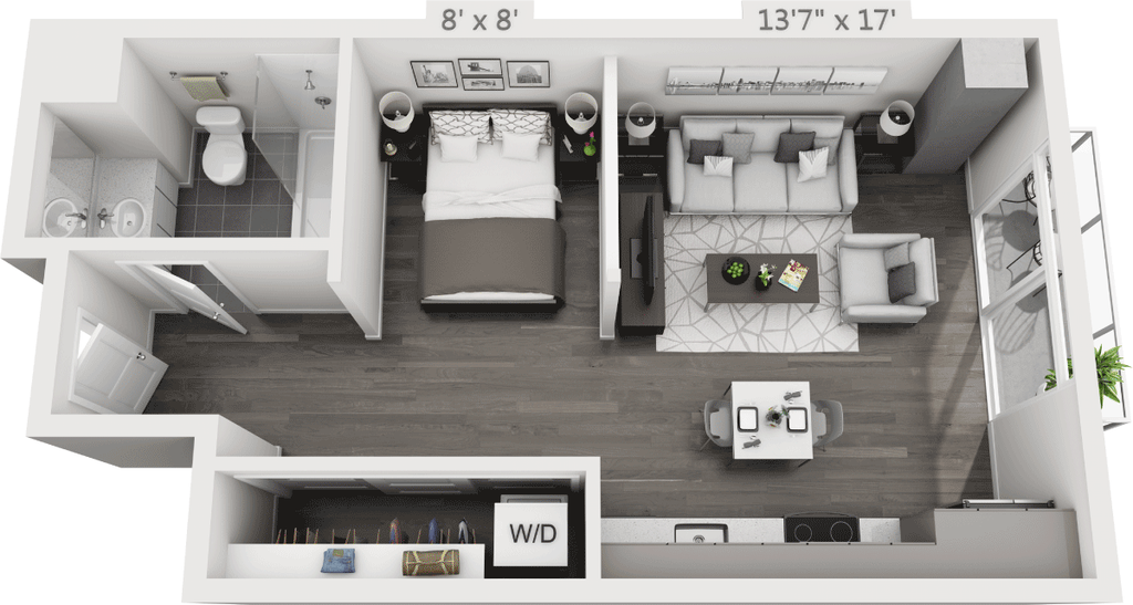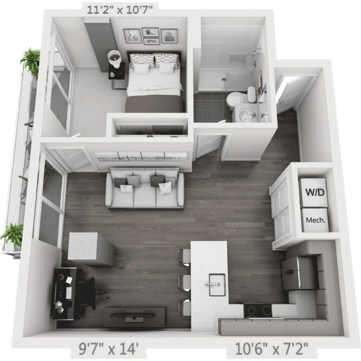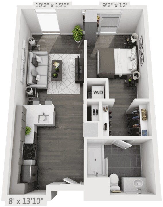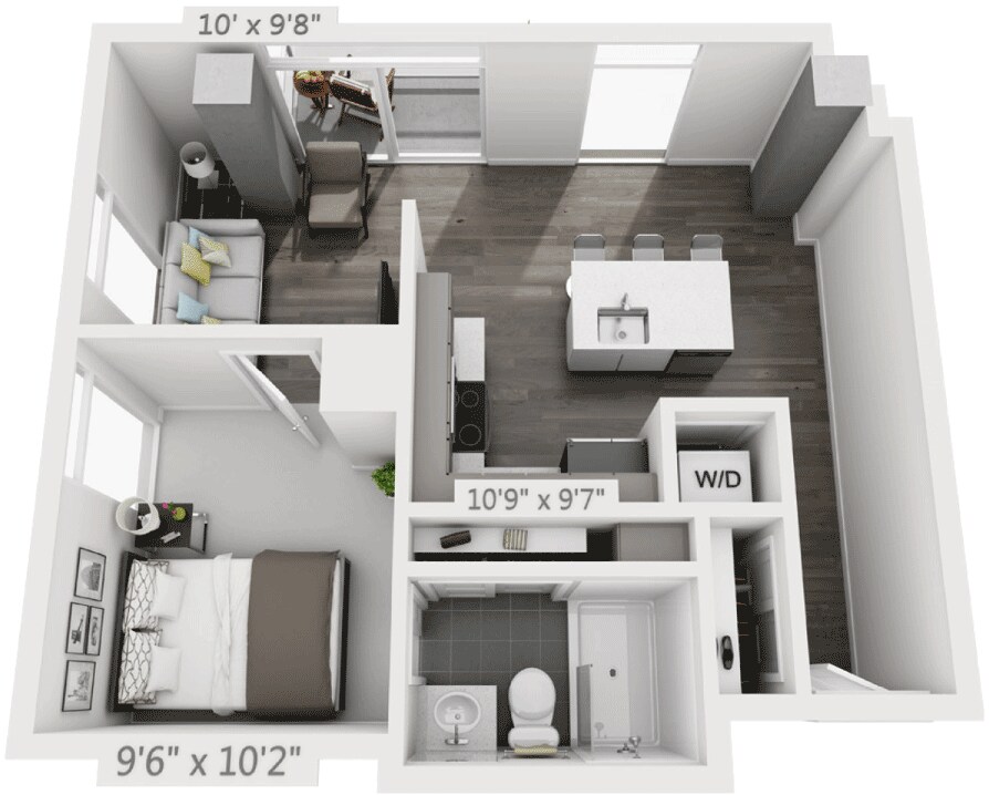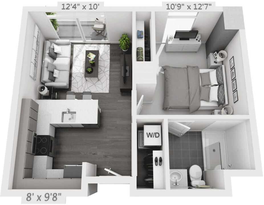 Studio, 1 Bath, 542-552 sq ftAvailable NowLargest StudioThis is the largest Studio at this PropertyModel Gallery
