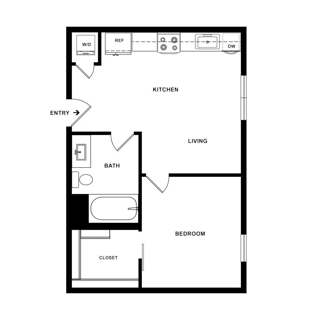 1 Bed, 1 Bath, 585 sq ftModel Gallery