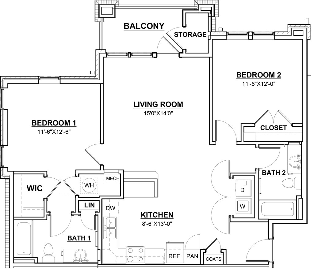 Two Bedroom - Floorplan 1 3 Bedrooms