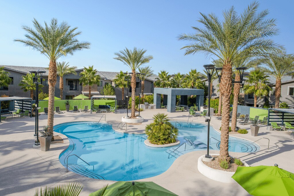 Discover luxury apartments and townhomes in Henderson, NV, that deliver Smart Home Technology, cutting edge amenities, a highly desirable location near the Las Vegas Strip, and chic, contemporary decor all in one place. Youll find luxury features around every corner that will elevate your lifestyle. Come home to spacious kitchens that boast quartz countertops with modern cabinetry and stainless steel appliances. Bathrooms offer quartz vanities, dual flush toilets, and a rain shower head in the master, as well as optional large soaking tubs. Appreciate having your own private balcony, where you can enjoy fresh air as you enjoy views of the gorgeous community. At Evolve, you can have it all.
