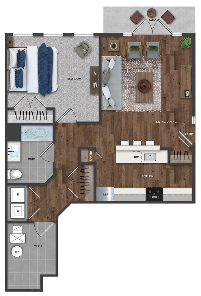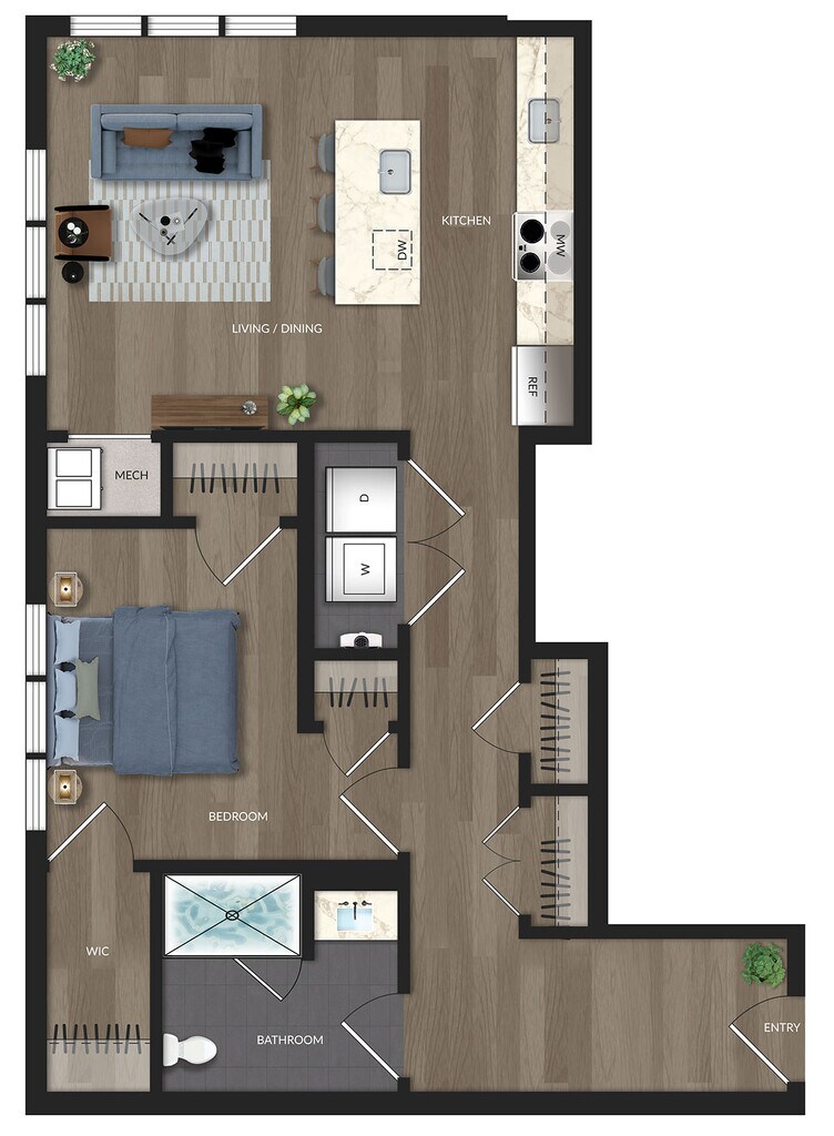 1 Bed, 1 Bath, 675 sq ftAvailable NowModel Gallery