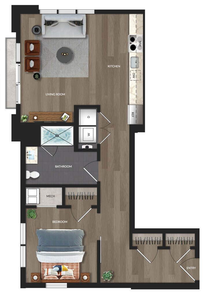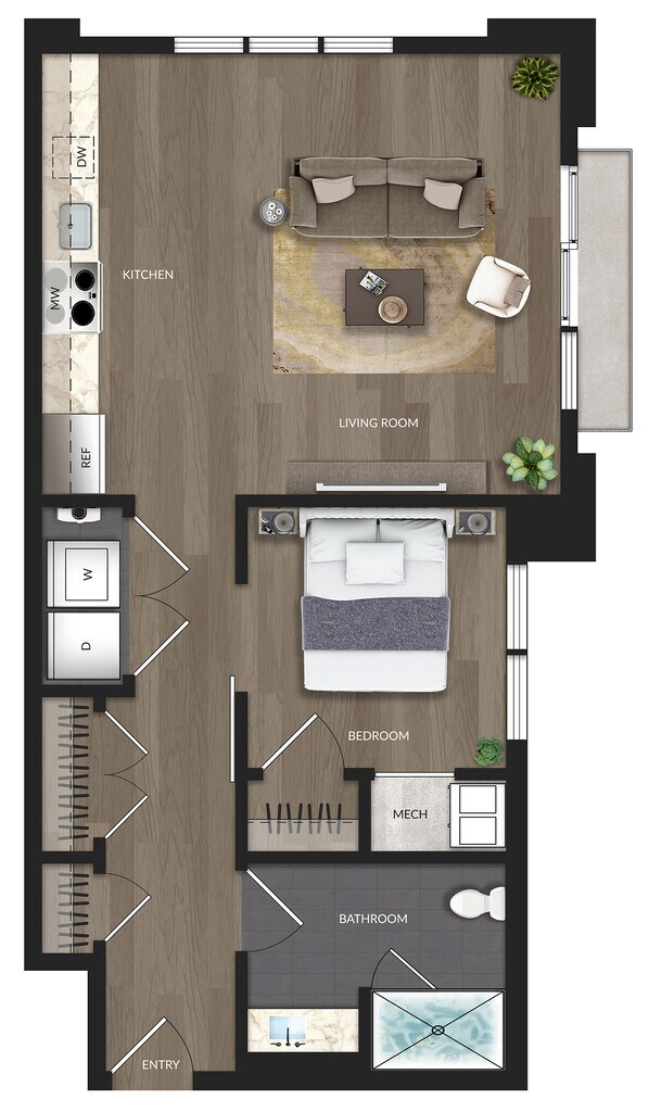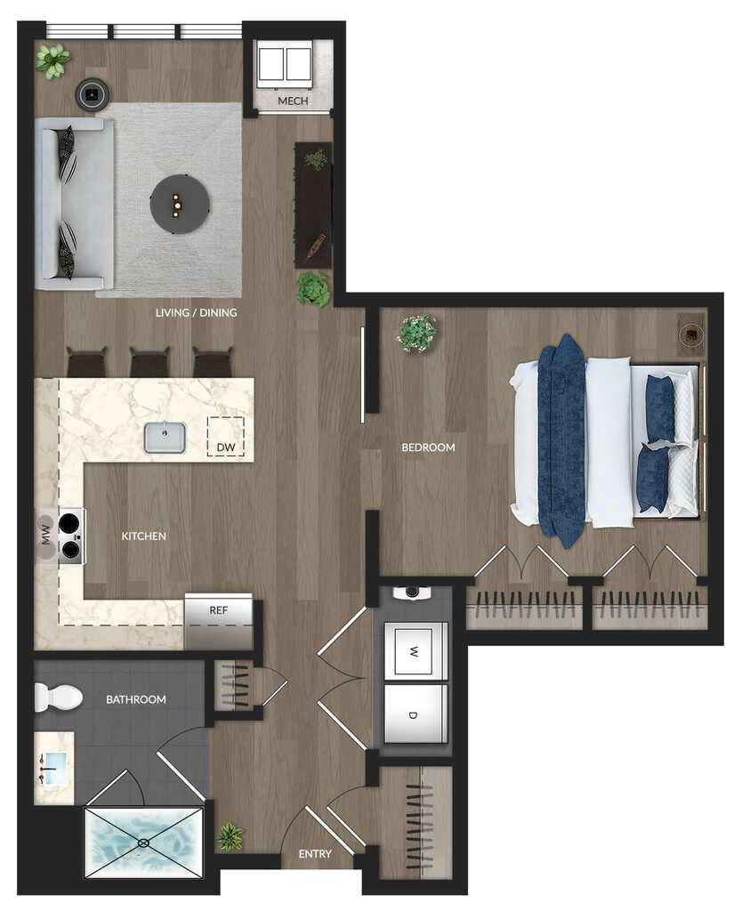 1 Bed, 1 Bath, 580 sq ftAvailable NowModel Gallery