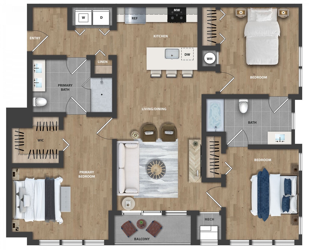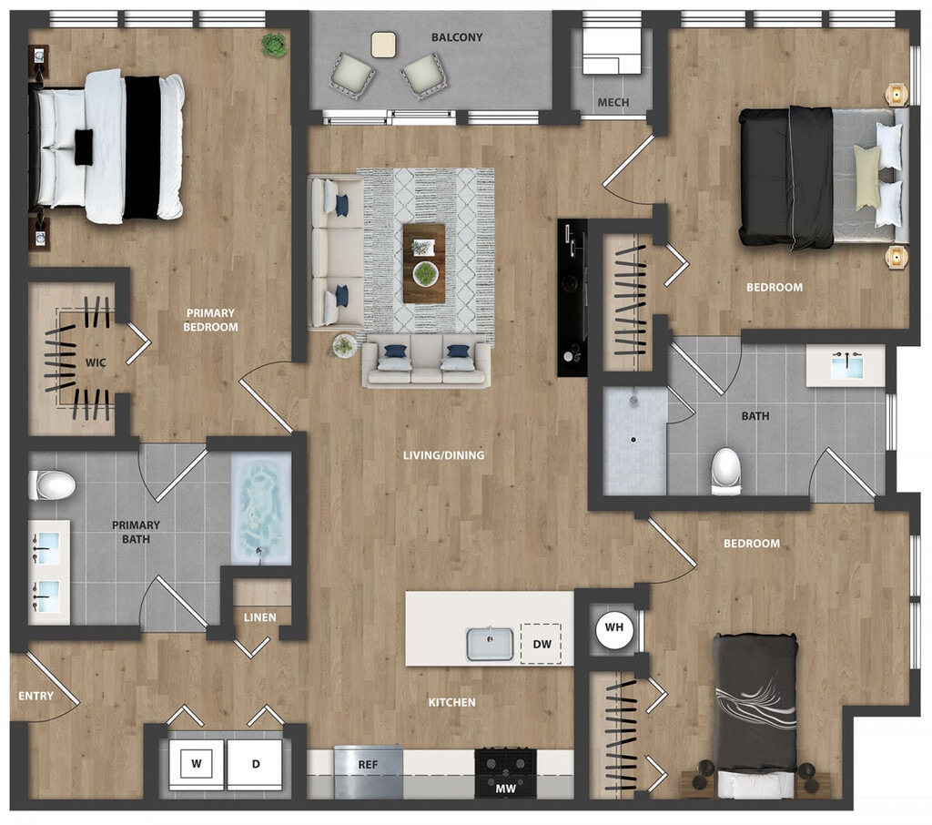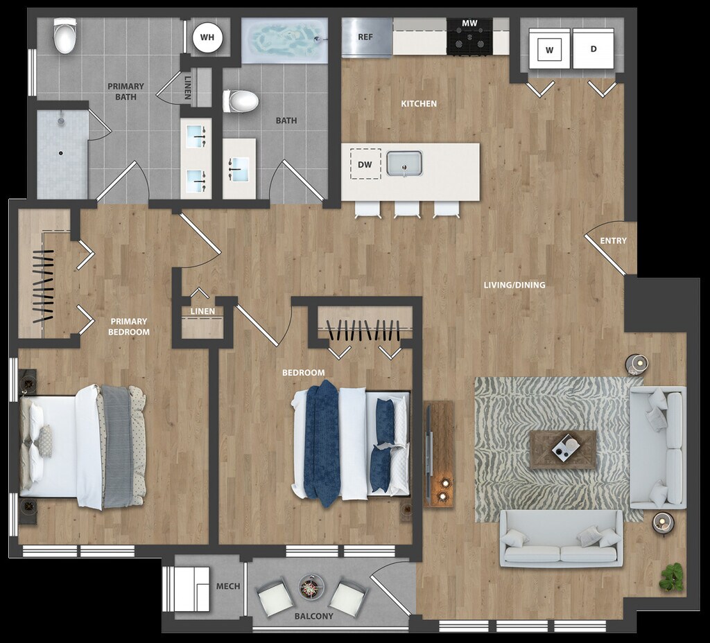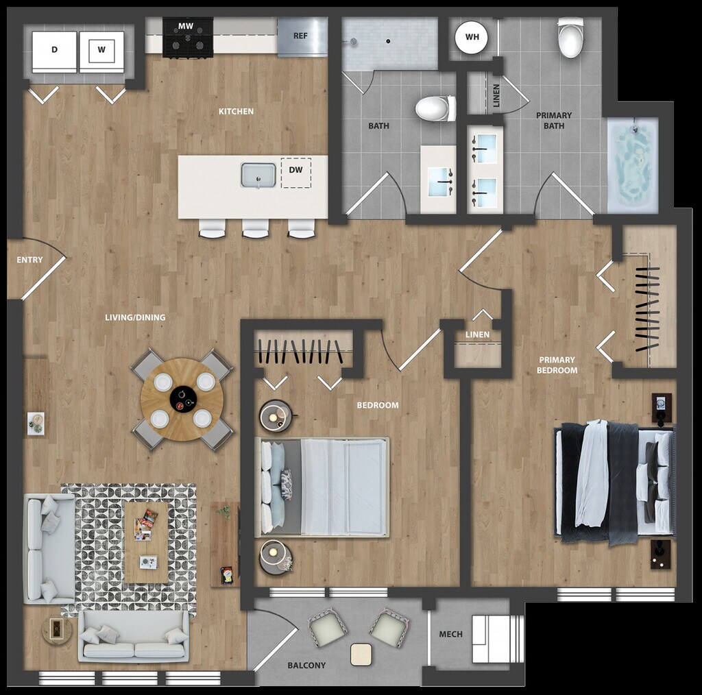 1 Bed, 1 Bath, 835 sq ftAvailable NowModel Gallery