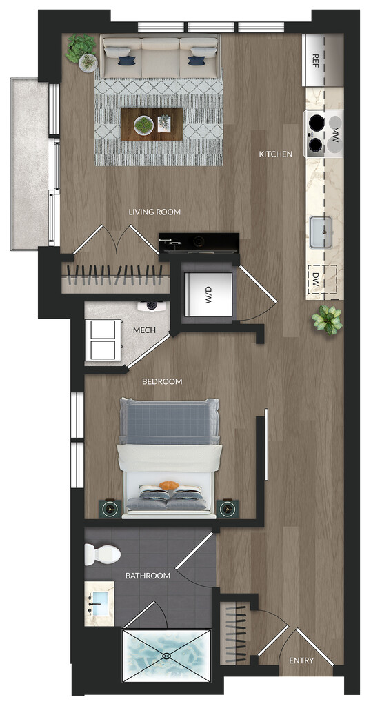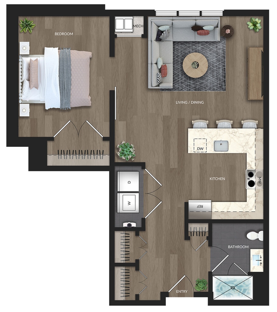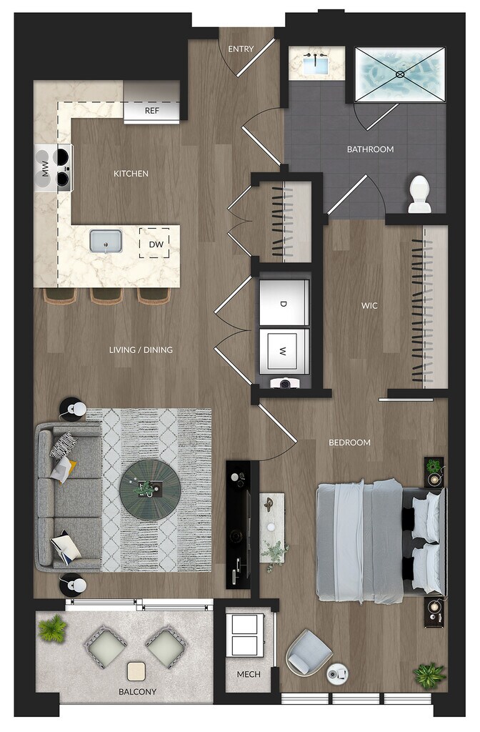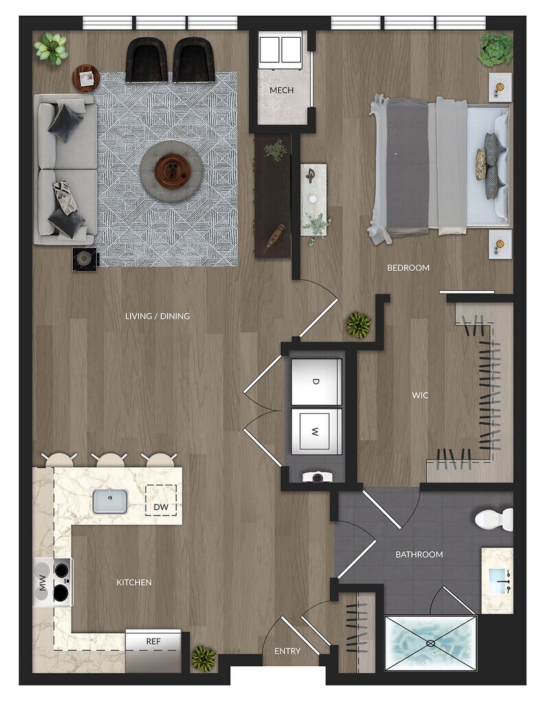 1 Bed, 1 Bath, 540 sq ftAvailable NowModel Gallery