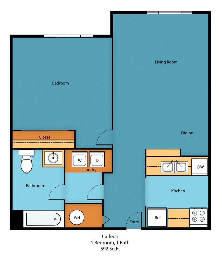 1 Bed, 1 Bath, 592 sq ftAvailable NowModel Gallery