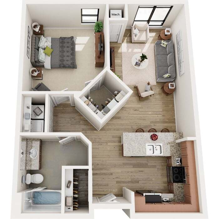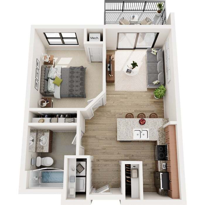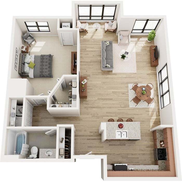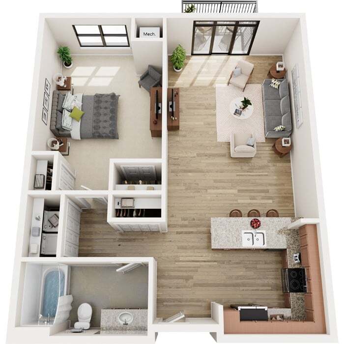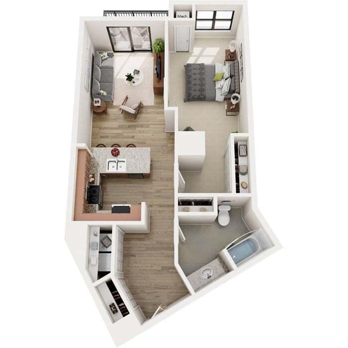 Studio, 1 Bath, 634 sq ftModel Gallery