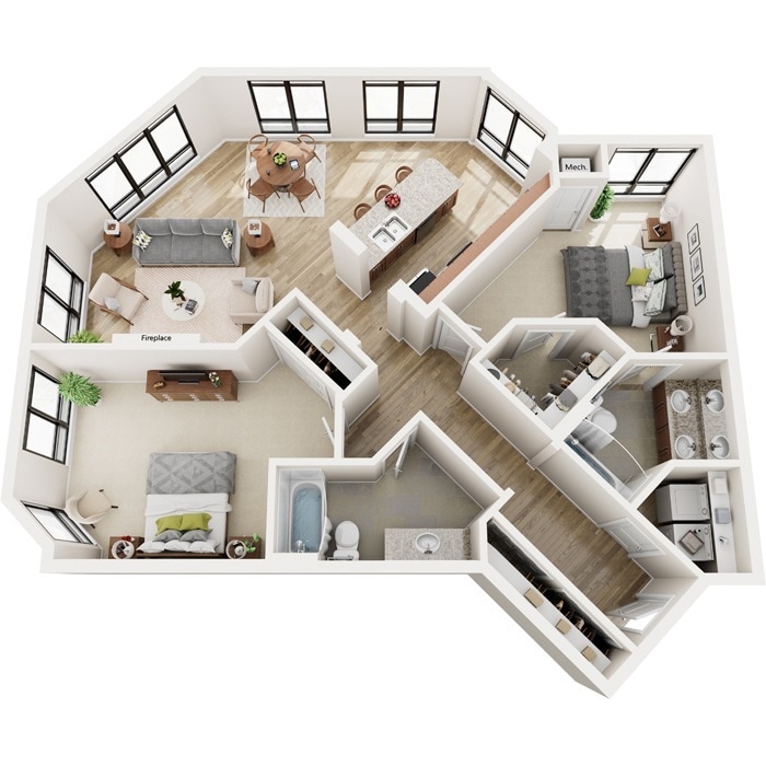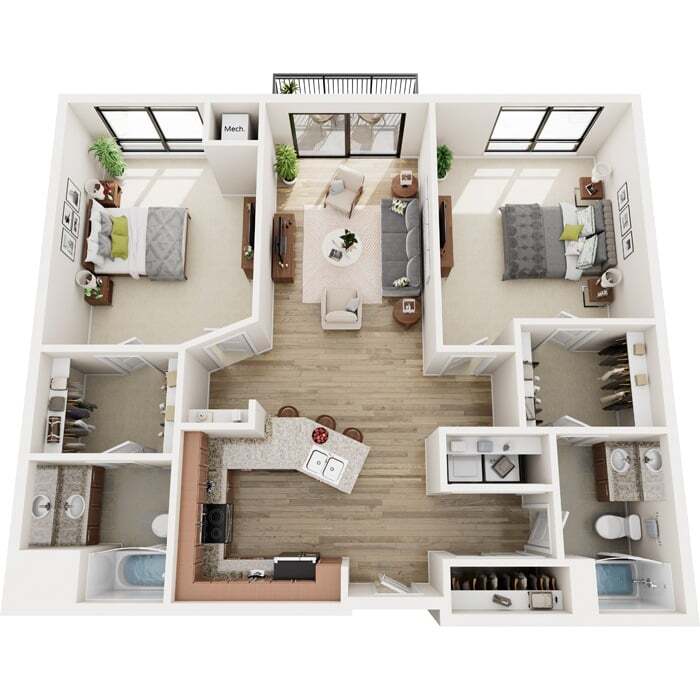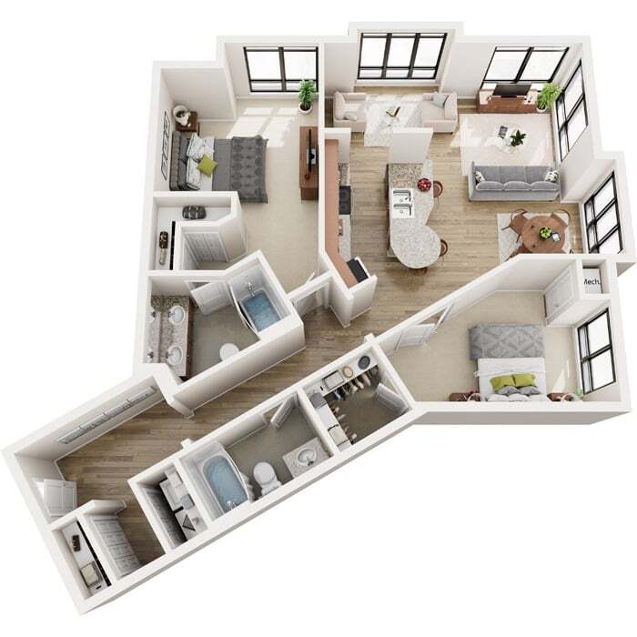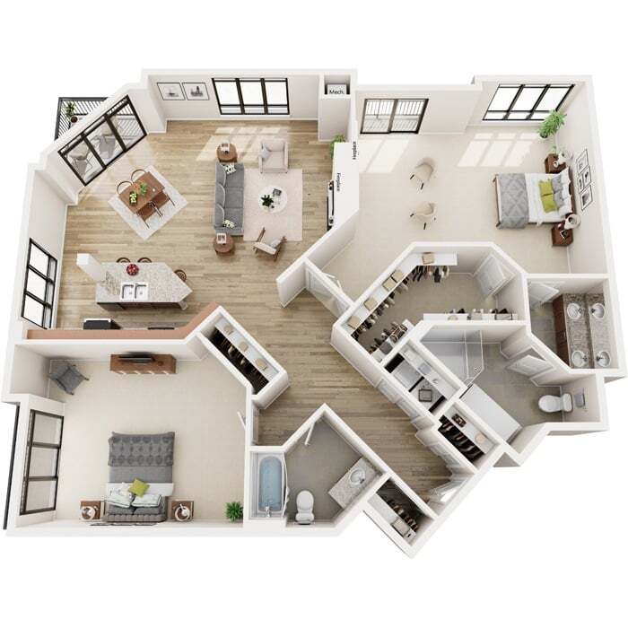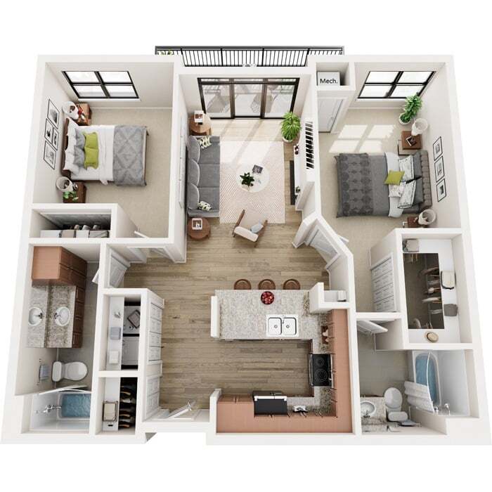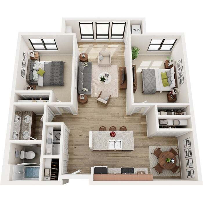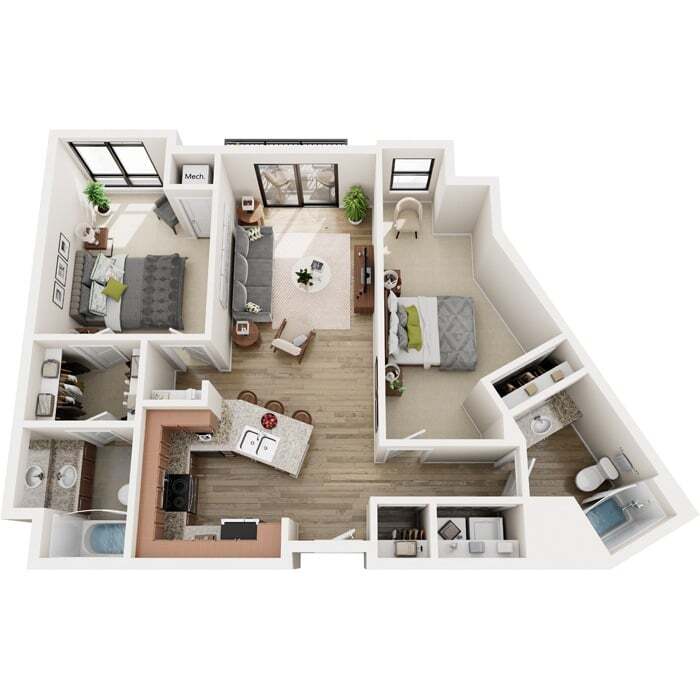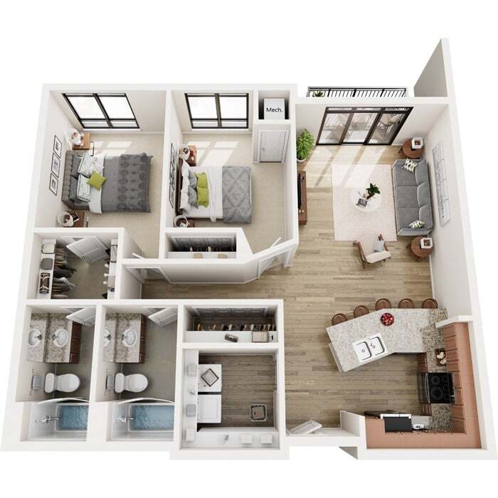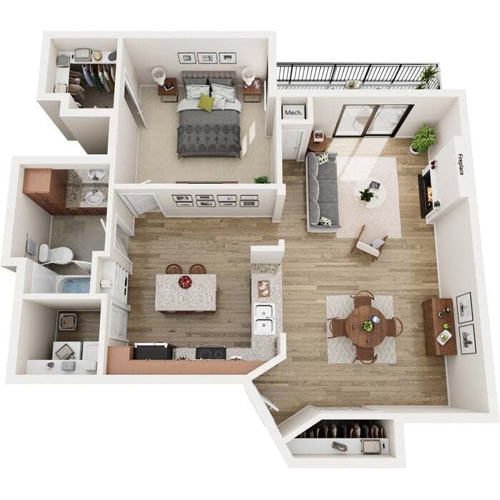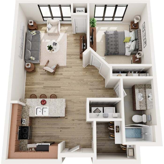 1 Bed, 1 Bath, 857 sq ftPlus FeesAvailable NowModel Gallery