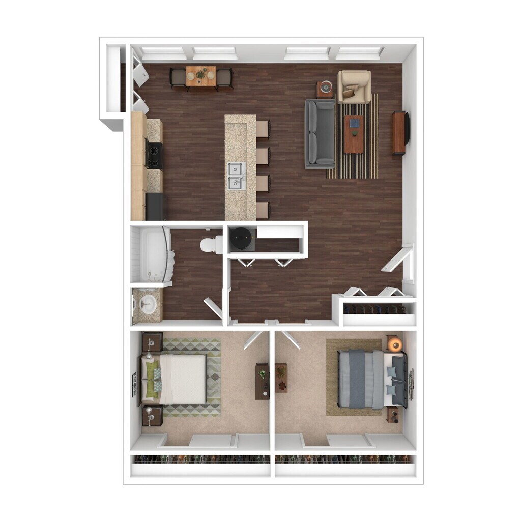 1 Bed 1 Bath - Floorplan 3 Apartment Unit: 207Apartment Model: 1 Bed 1 Bath$8231 Bedroom, 1 Bath, 859 sq ftAvailable November 8, 20252 Bedrooms