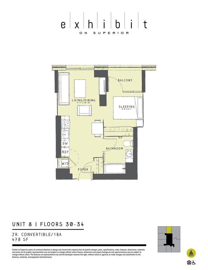 Exhibit on Superior offers Studio to 3 Bedroom apartments starting from $2,204 and having 478–1,455 sq ft. Here is the current pricing and availability: