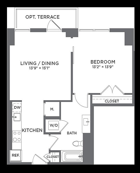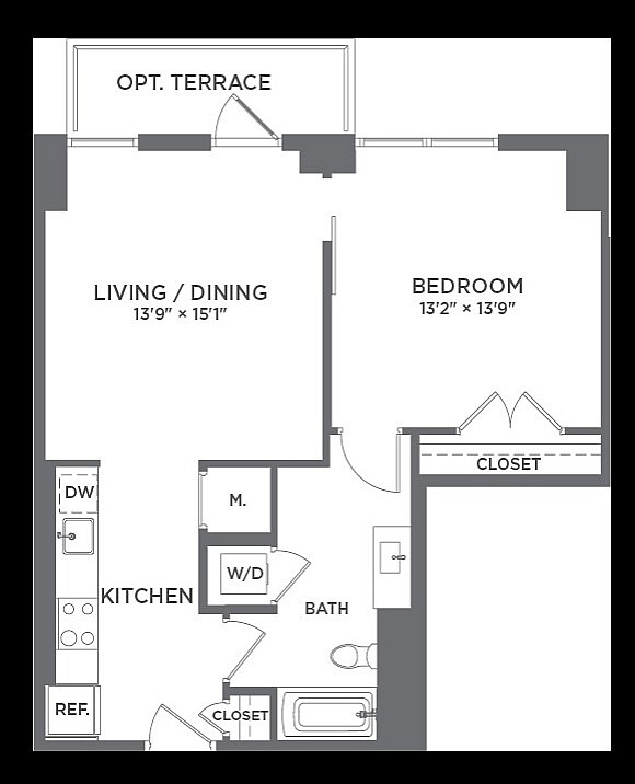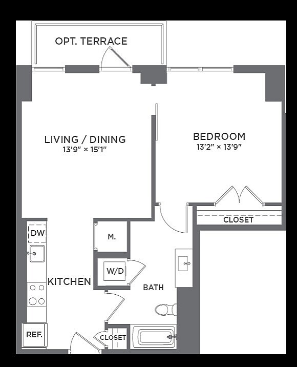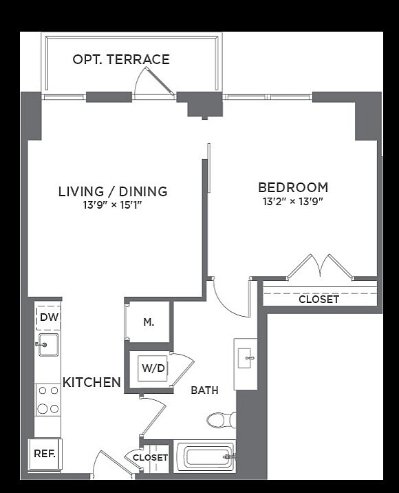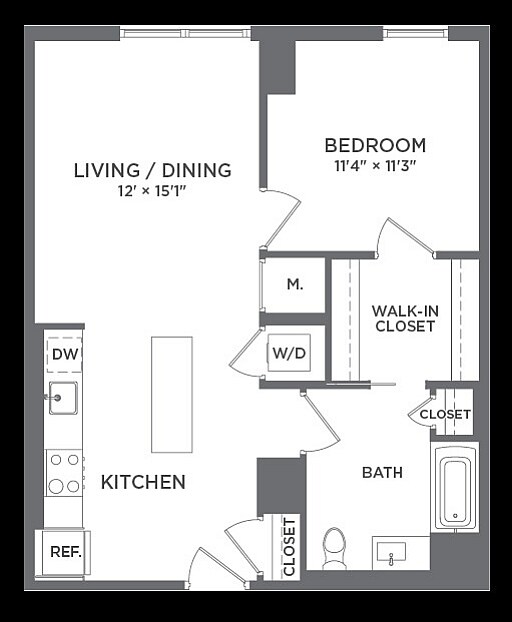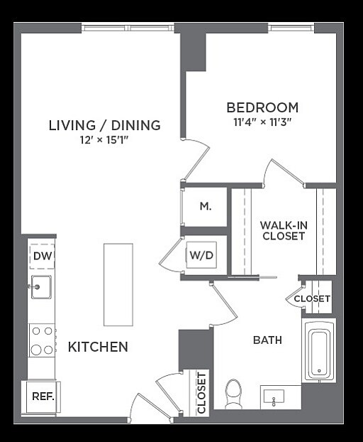 A3 - Floorplan 1 Apartment Unit: Iris-1511Apartment Model: A3From $2,7981 Bedroom, 1 Bath, 715 sq ftAvailable NowFloorplan A2