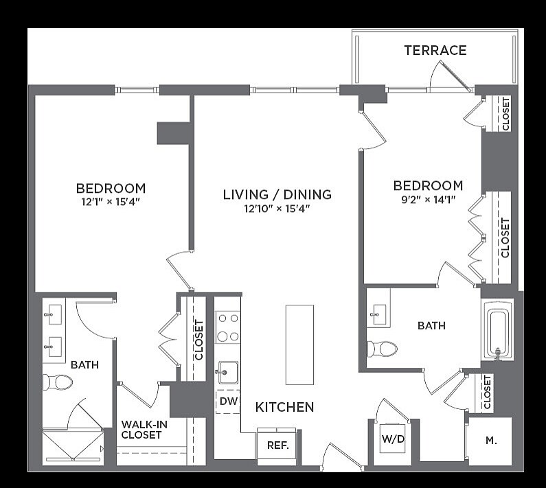 1 Bed, 1 Bath, 715 sq ftAvailable NowModel Gallery