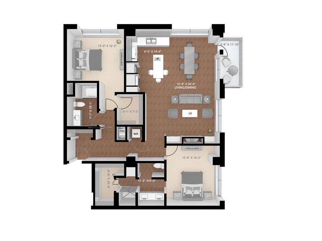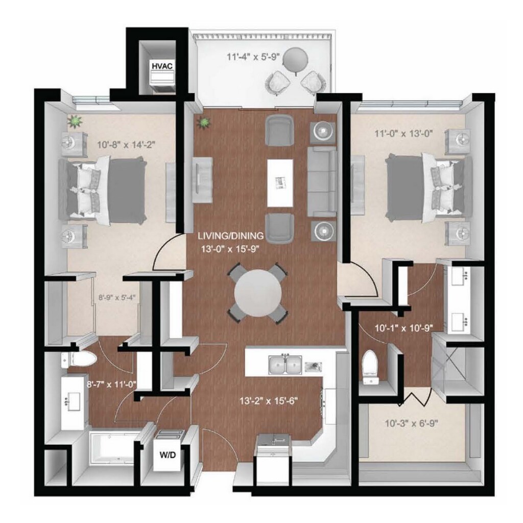 Apartment Model: SartellFrom $2,4591 Bedroom, 1 Bath, 854 sq ftAvailable Now![]()