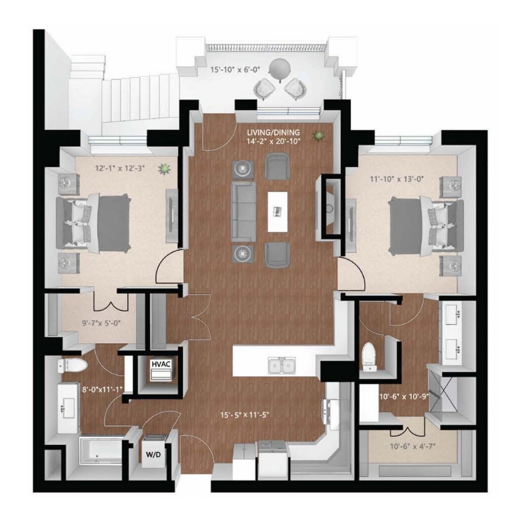 Sartell - Floorplan 1 Apartment Unit: 0549Apartment Model: Sartell$2,4591 Bedroom, 1 Bath, 854 sq ftAvailable NowPepin