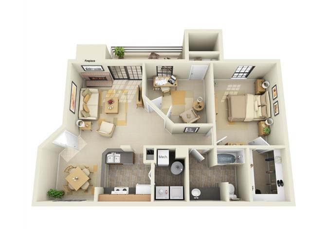 1 Bed, 1 Bath, 626 sq ftAvailable NowModel Gallery