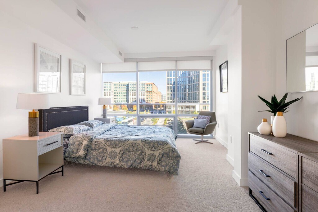 F1RST Residences is a modern apartment community in the Navy Yard/Ballpark neighborhood offering apartment homes with floor-to-ceiling windows, stone countertops, movable kitchen islands, stainless steel appliances, and in-unit washers and dryers. Select residences include private balconies with views of Navy Yard. The community offers resort-style amenities including a rooftop pool deck, dog park, outdoor TV lounge, landscaped courtyard with grilling stations, and a resident lounge with a kitchen. Residents also enjoy a seamless experience through a convenient mobile app, providing access to community spaces, amenities, guest services, and maintenance requests, reflecting our dedication to innovative technology, elevated service standards, and community enjoyment.
