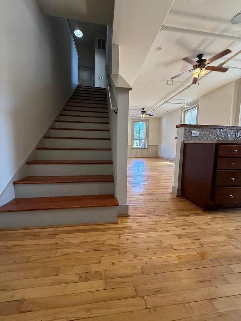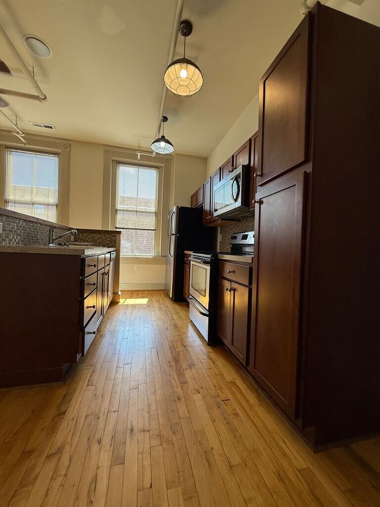 Check out this great two bedroom one and a half bath townhouse loft unit, located in the heart of downtown Danville, VA on Main Street! Unit includes stainless steel appliances, tall ceilings with dropped ceiling fans, exposed brick, two stories for separation of bedrooms and living space and more! Ferrell Historic Lofts afford premier residential spaces in the heart of Downtown Danville at 533-535 Main Street. This historic building was built circa 1885 for the Ferrell Furniture Company and was restored by Rehab Builders, of Winston-Salem, NC. State of the art green building techniques have been incorporated to provide a desirable environment for its residents. Rental rates include all services: water, sewer, trash, electric service, and high-speed internet. Dedicated on-site parking spaces accessed from Patton Street provide secure entry into the rear of the building. A dedicated entrance from Main St. provides access to the elevator corridor. An exercise gym is located in the basement level along with coin-operated laundry facilities. High ceilings, refinished hardwood flooring and large windows create desirable residences. Historic wainscot paneling enhances the character and charm of the building. Kitchens are equipped with stainless steel appliances, mosaic tile backsplashes, and bar tops created from heart of pine reclaimed wood. Living rooms feature built-in complimentary I-Pod docking stations and speakers. All party walls are built on a double-walled system, which includes an extra layer of sheetrock, insulation, and an air gap to prevent noise transfer. •Pets accepted with approval. $300.00 non-refundable pet deposit. $50.00 pet rent per month for dogs and $25.00 pet rent per month for cats. Per pet once approved. •Move-in fee non-refundable $250.00