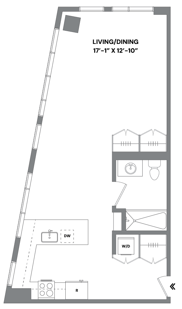 0B-3A Studio Apartment Unfurnished - Floorplan 1 0A Studio Apartment Furnished