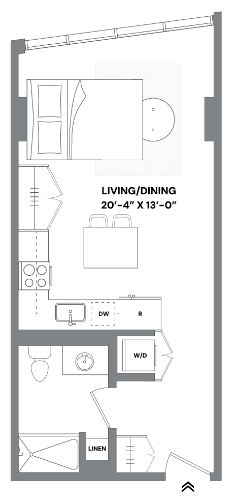 0A-2A - Floorplan 1 0A-2 Studio Apartment Furnished