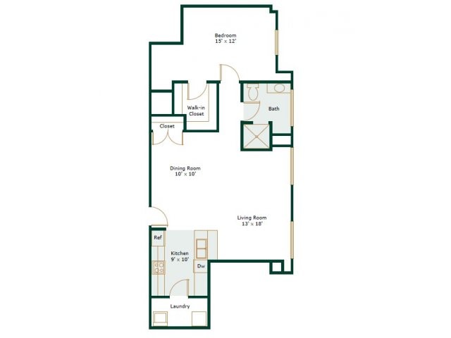 One Bedroom One Bath - Floorplan 1 Gillespie