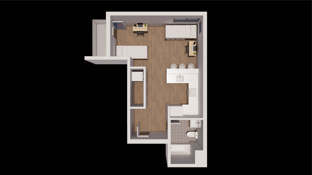 Apartment Model: A3 (Studio)From $1,450Studio, 1 Bath, 525 sq ftAvailable August 15, 2026FloorplansPhotos![]()