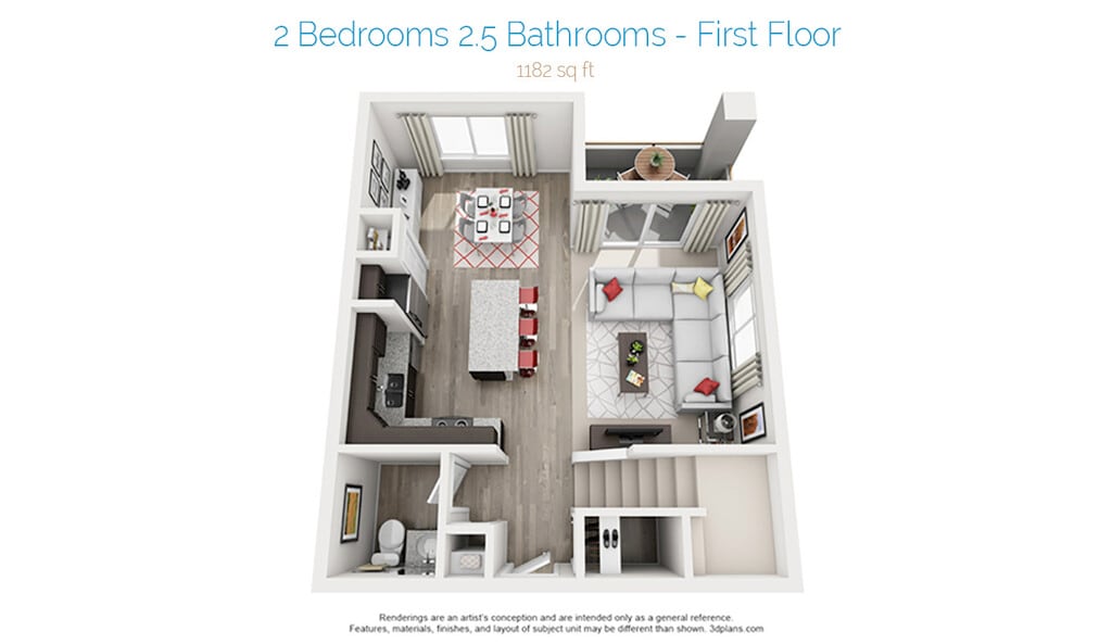 2 Beds, 2.5 Baths, 1020-1138 sq ftTotal Monthly PriceAvailable NowAvailability Details