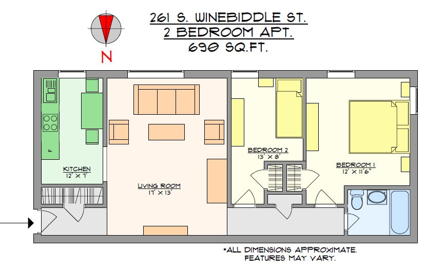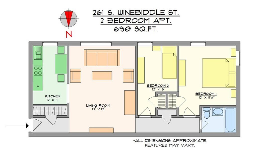 2 Beds, 1 Bath, 690 sq ftAvailable NowModel Gallery
