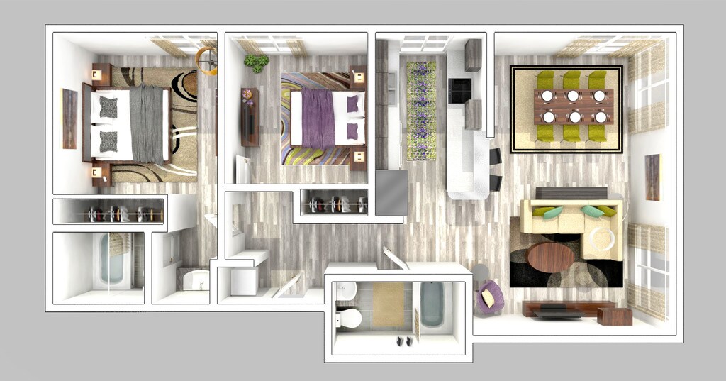 2 Beds, 2 Baths, 966-1000 sq ftModel Gallery