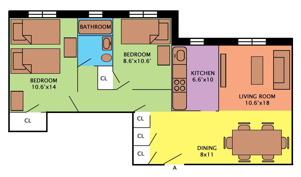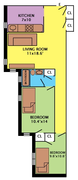 2 Beds, 1 Bath, 700 sq ftAvailability Details
