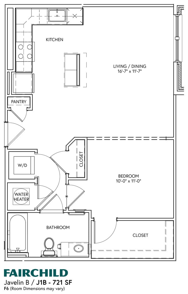 Javelin B - Floorplan 1 Apartment Unit: F638Apartment Model: Javelin B$1,895Studio, 1 Bath, 721 sq ftAvailable April 6, 20261 Bedroom