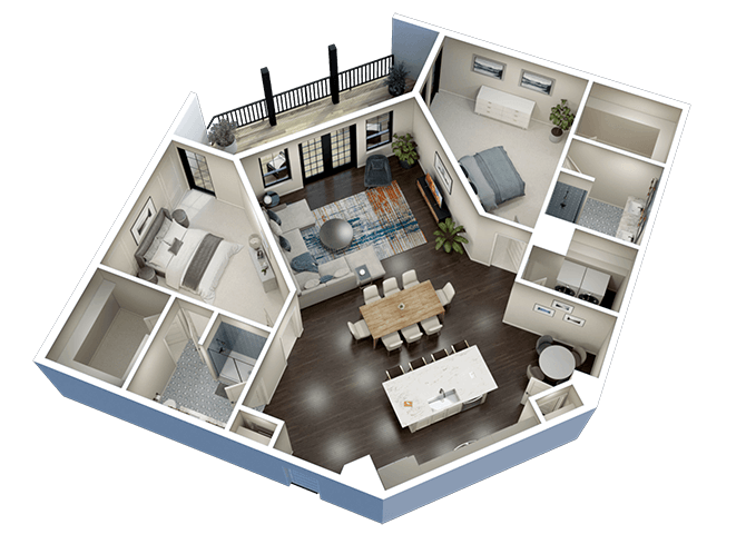 Apartment Model: 2 Bed 2 Bath D$2,9342 Bedroom, 2 Bath, 1536 sq ftUnavailable![]() - 2 Bed 2 Bath D - Floorplan 1