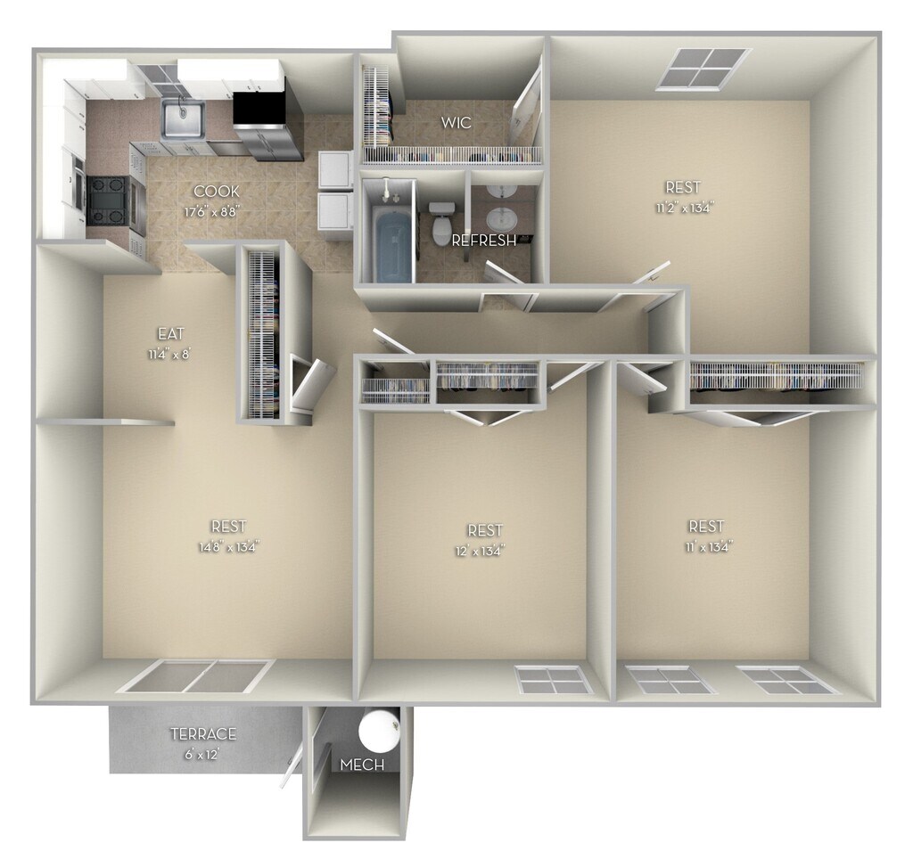 2 Beds, 1 Bath, 897 sq ftAvailable NowCheapest 2 BedroomThis is the cheapest 2 Bedroom at this PropertyModel Gallery