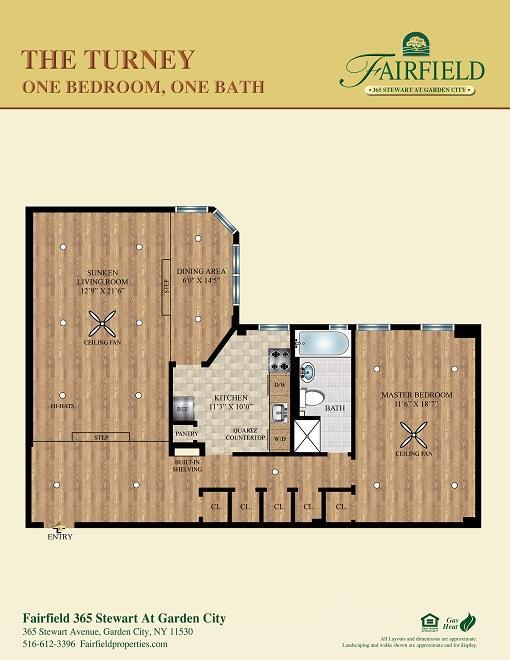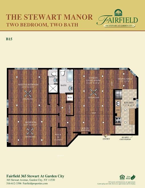 Fairfield 365 Stewart At Garden City offers Studio to 2 Bedroom apartments starting from $2,945 and having 696–1,373 sq ft. Here is the current pricing and availability: