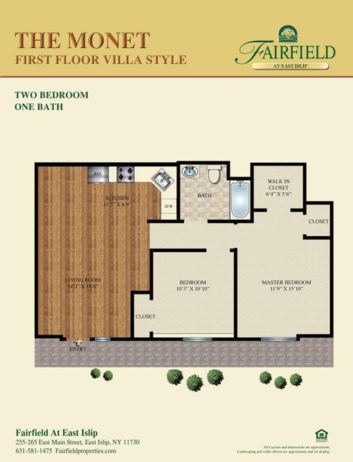 Studio to 2 Bedroom Apartments at Fairfield At East Islip currently range from $2,170 to $2,840