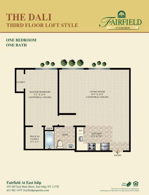 Fairfield At East Islip offers Studio to 2 Bedroom apartments starting from $2,170 and having 420–1,003 sq ft. Here is the current pricing and availability: