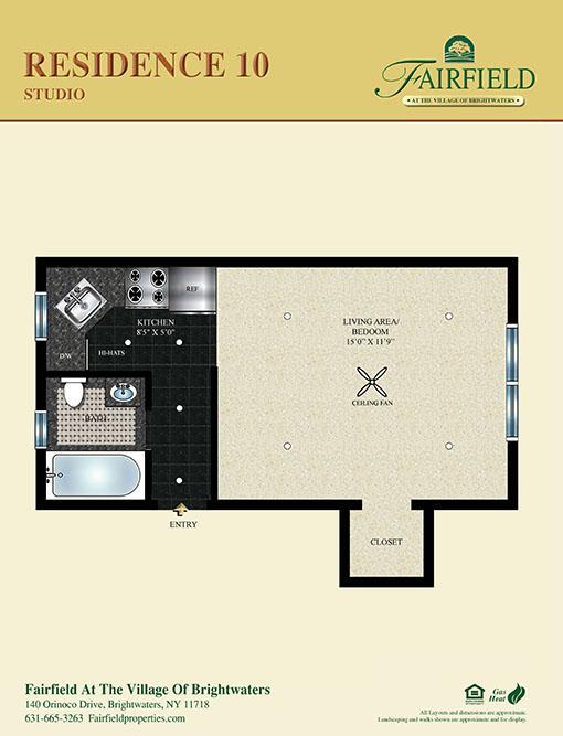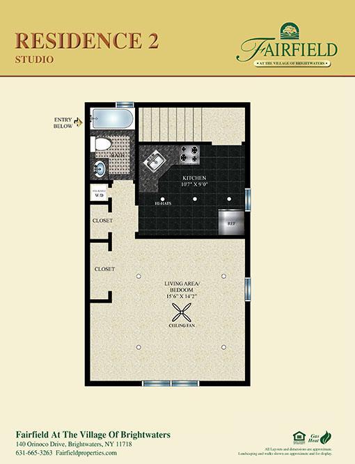 Fairfield At The Village Of Brightwaters offers Studio to 1 Bedroom apartments starting from $2,000 and having 304–457 sq ft. Here is the current pricing and availability: