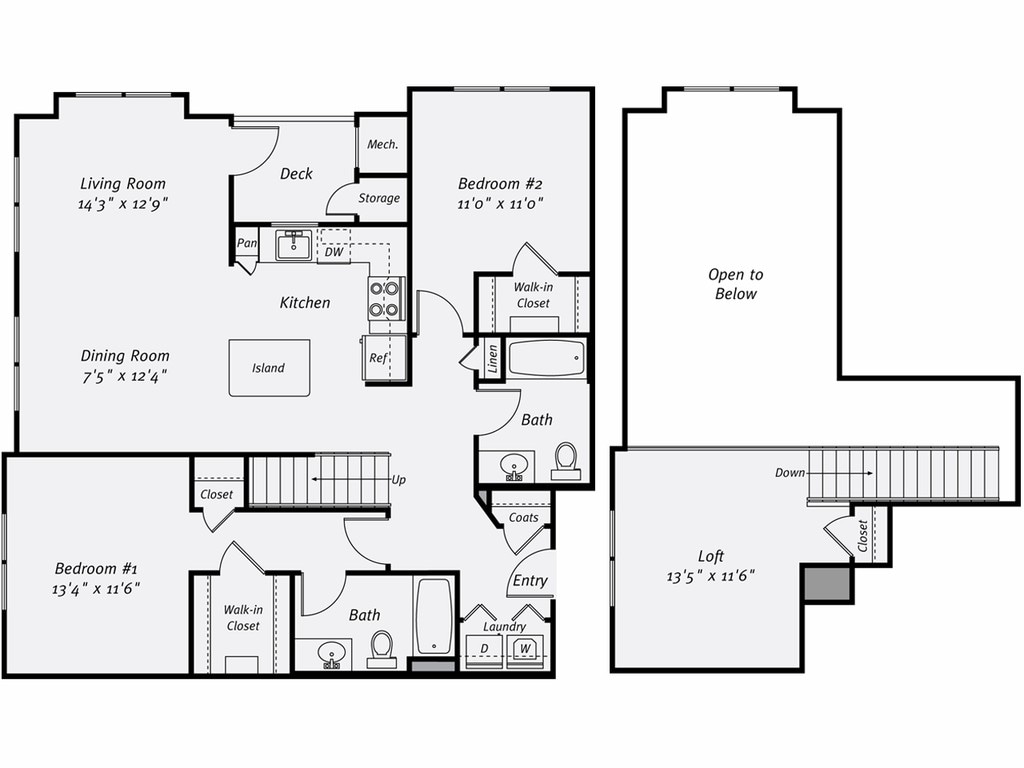 A3 Thoreau, 1BR/1BTH - Floorplan 11 A3L James, 1BR/1BTH PLUS LOFT