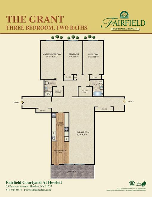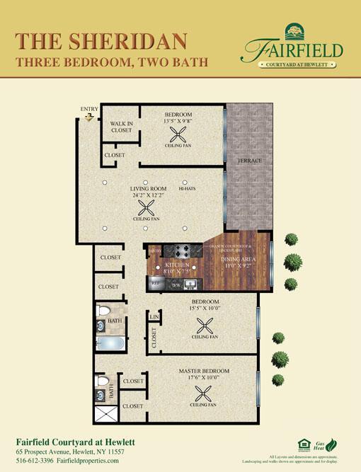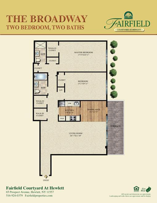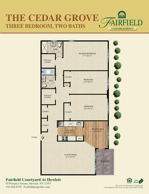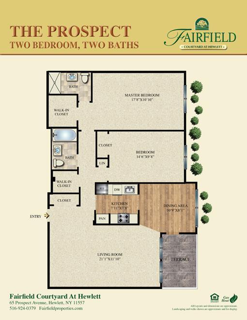 Fairfield Courtyard At Hewlett offers 1 to 3 Bedroom apartments starting from $3,000 and having 650–1,762 sq ft. Here is the current pricing and availability: