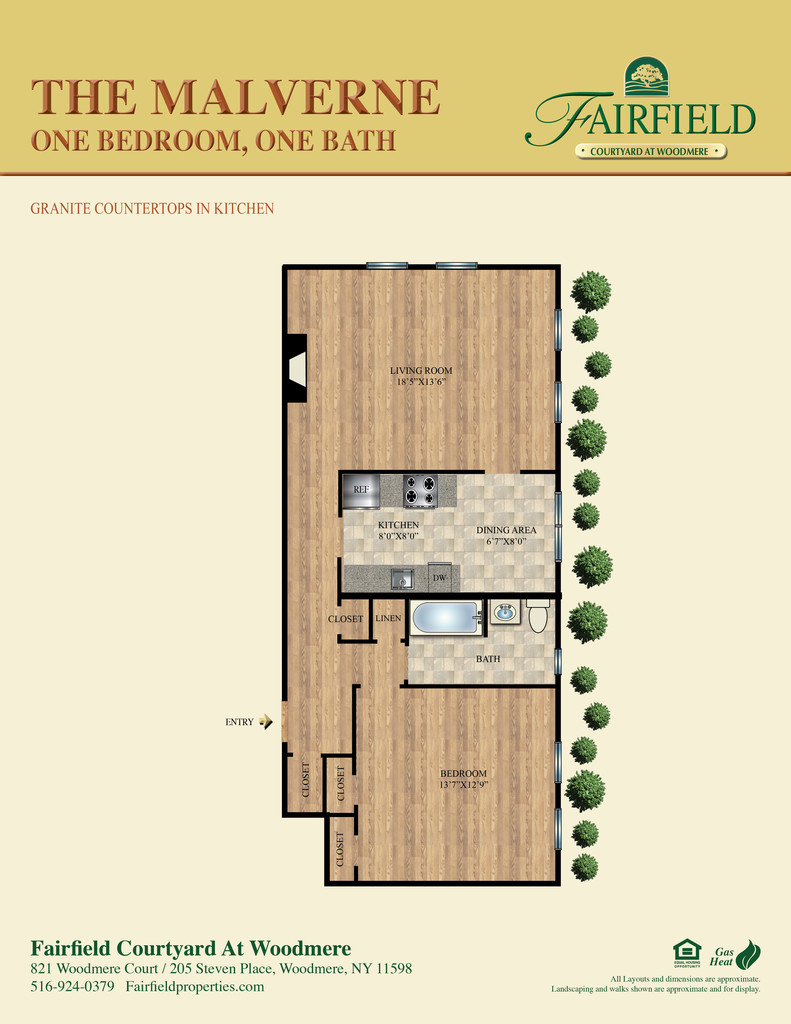 A charming, historical rental community in an exceptional Woodmere location! A commuter delight with the best of NYC so close, world class beaches nearby and a place to call home in an outstanding Nassau County locale. We have very spacious 1 & 2 Bedrooms with wood floors.Under New Ownership by award winning Fairfield Properties!Fairfield Courtyard At Woodmere has brand new renovations including all new, modern, Tuscany-style Kitchen Cabinetry with Stainless Steel Appliances, stunning Granite Countertops, Ceramic Tile kitchen flooring. Our apartments boast lovely, spacious rooms with beautiful inlaid hardwood flooring and charming faux fireplace with mantel. Great new features such as: ceramic tile bath with rainhead shower and Tuscany-style vanity with granite countertop. Outstanding crown and base moulding add the finishing touch. Vertical window treatments, ample closets and raised panel doors are additional featured upgrades. Our community has a lovely cou