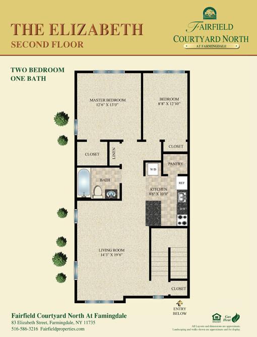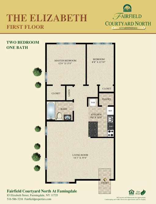 Great 55 And Over community. Spacious two bedroom apartment homes located in Farmingdale Village.Beautiful, spacious Two Bedroom, One Bath apartment home. We offer updated kitchen and bath, central air conditioning, plush carpeting, crown and base moulding, vertical window treatments.Fairfield Courtyard North is just minutes to Farmingdale village where you can explore the revitalization of the village with many shops and restaurants. So convenient to the Long Island Railroad where you can catch a train at the Farmingdale Station for a quick trip to Manhattan or points East!We are easily reached via Route 110, Route 135 (Seaford-Oyster Bay Expressway) as well as Route 24, Hempstead Turnpike.