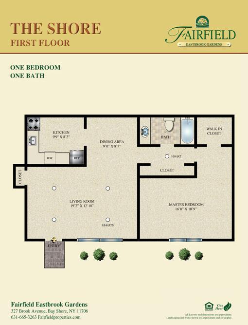 $1200 Off 1-Time With Move-In By 11/27/25 With 12 Month or 18-Month Lease* 18-Month Lease No Increase* $99 Security Deposit* *Restrictions Apply. Welcome to Fairfield Eastbrook Gardens, Bay Shore Spacious one and two bedroom apartments feature granite kitchen counters, stainless appliances, gooseneck faucet and stainless steel sink. We have hi-hat lighting, ceiling fans, two tone paint, crown and base molding, faux woodgrain window treatments, walk-in closets, air conditioners. Our ceramic baths have granite vanity top, frameless shower doors, and rain showerhead. Near Bay Shore historic downtown village. Convenient to great restaurants and major shopping, Bay Shore Marina and Ferry to Fire Island, YMCA, and Long Island Rail Road Bay Shore Station. Ledgestone and cedar shake siding, paver walkways, bluestone entrance, professional landscaping with courtyard benches. Heat, hot water, cooking gas is included. On-site laundry center.